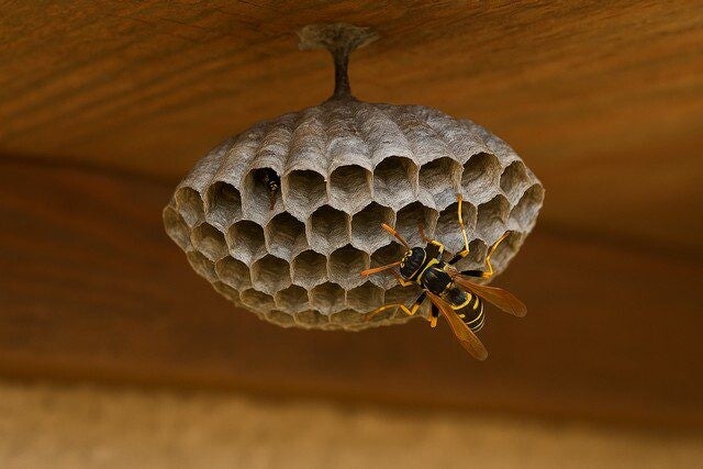 La guêpes maçonne est bien différente de ses cousines. Elle ne vie pas en colonie, elle vit seule, et construit ses nids tel un maçon, avec de la boue, dans les murs, sous les toits, etc.
